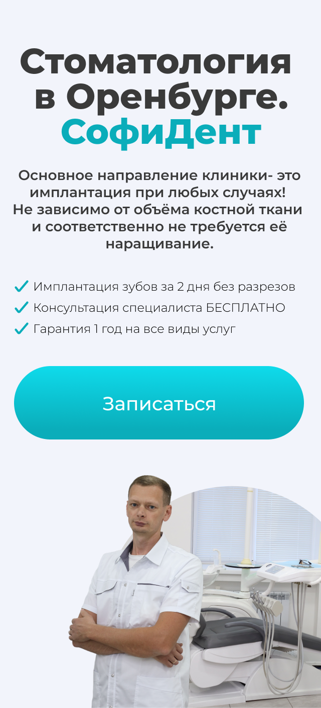 СофиДент – это единственная стоматологическая клиника в Оренбурге, которая предлагает имплантацию всей челюсти без разрезов, без ограничений по заболеваниям и возрасту пациента.